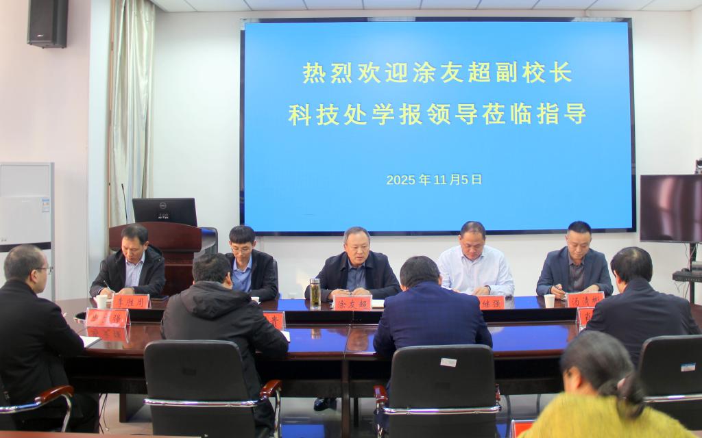 11月5日,副校长涂友超带领科技处处长牛继强、学报编辑部主任邱海洋、科技处副处长汤清彬、平台与成果科科长李胜周莅临伟德国际betvlctor1946调研指导科研工作;学院党委书记王永贵、院长周葆春、副院长肖琪聃、科研秘书马文强、邱文华博士参加调研。