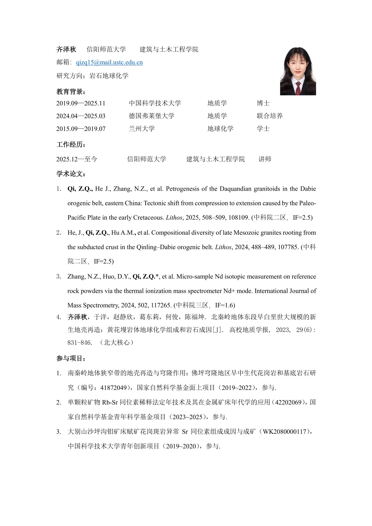 讲师 / 实验师 / 助教 / 助理实验师